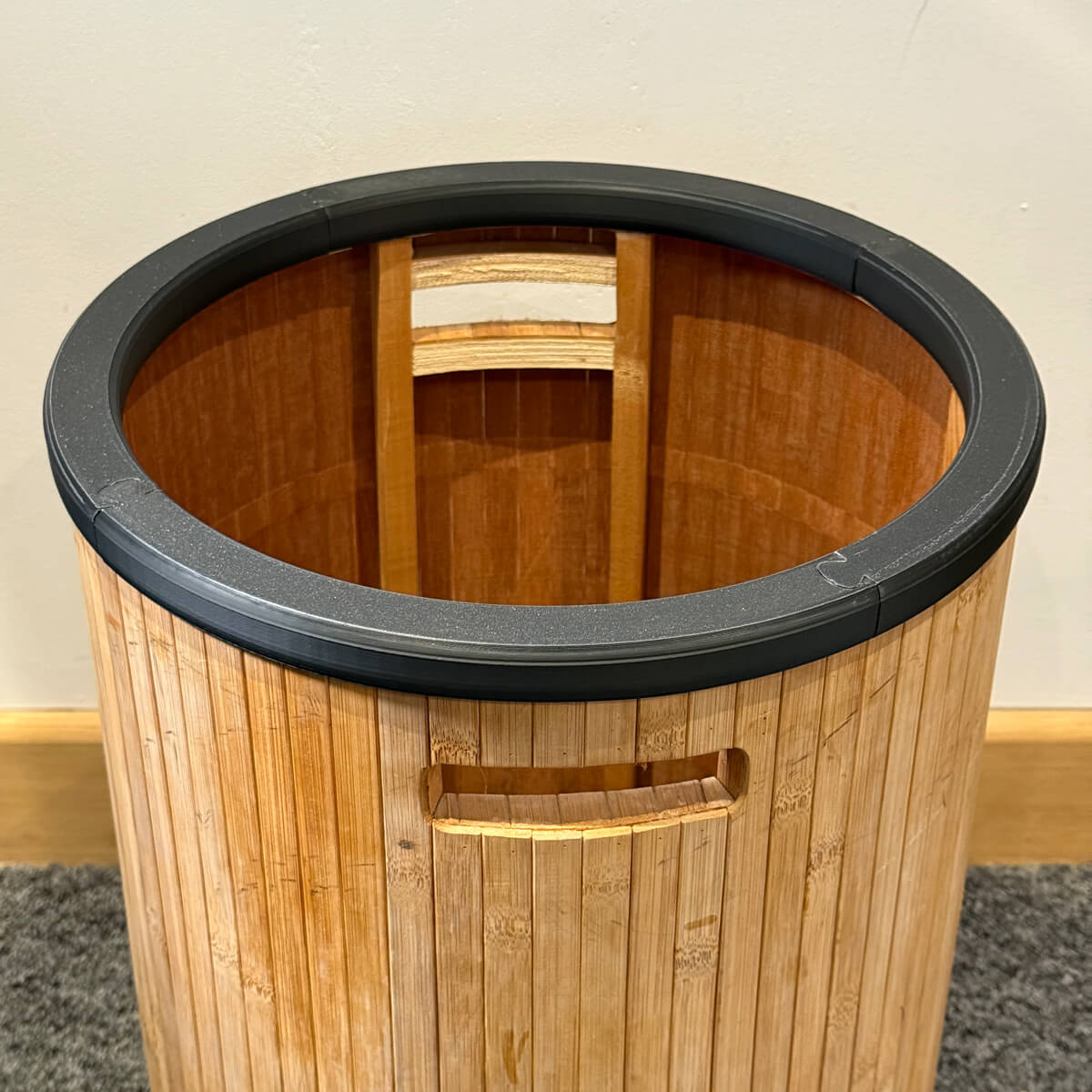 Our wooden laundry basket has served us well over the years, but recently the rim cover broke off completely.