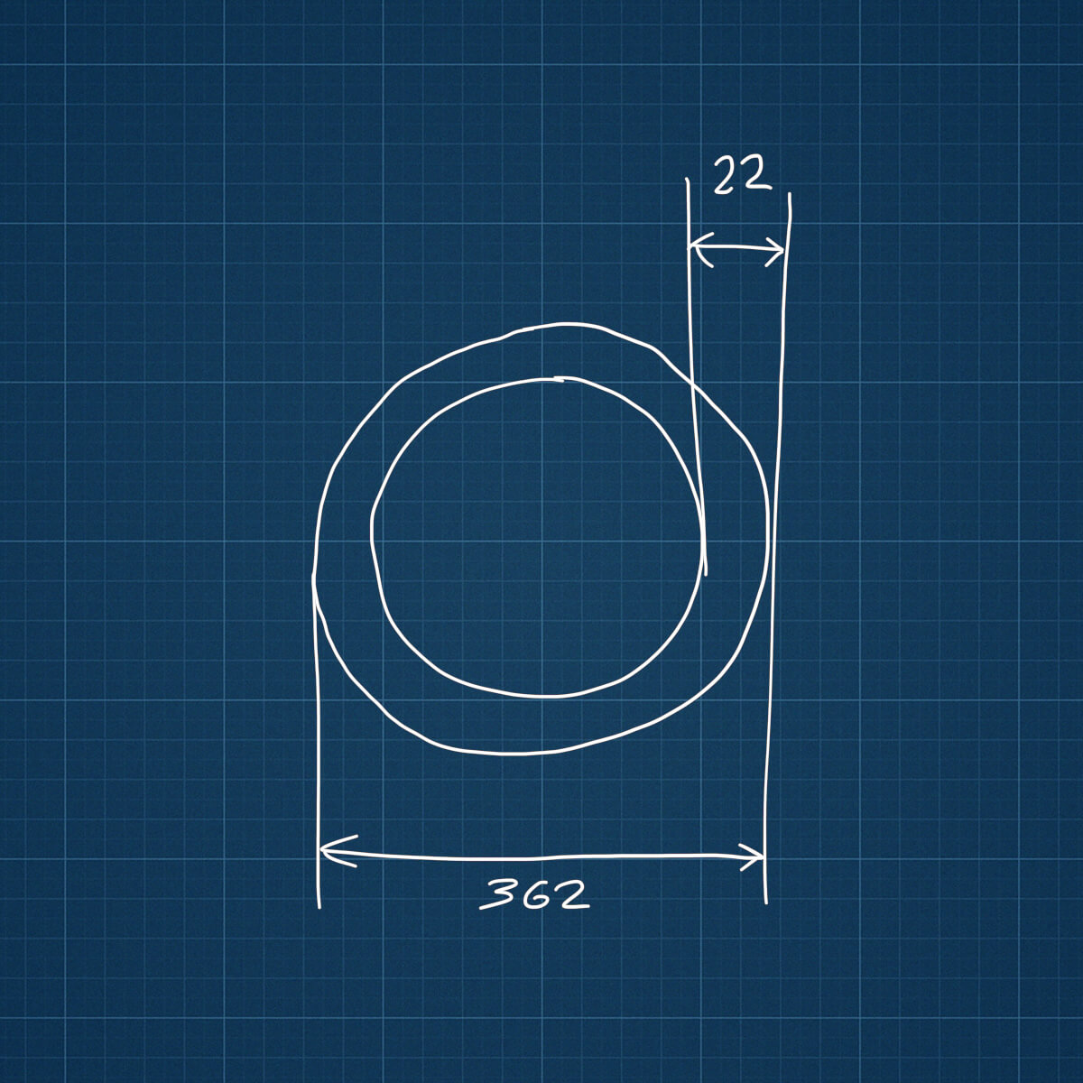 I started with some basic measurements and sketched out what I had in mind. Nothing fancy, just a simple rim that would cap the damaged edge.