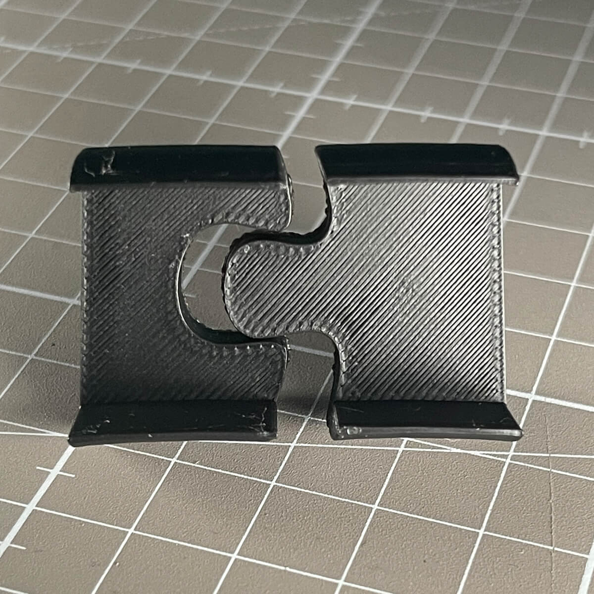 The next attempt was much better. I refined the jigsaw connection geometry, and this time got a nice tight fit between the pieces.