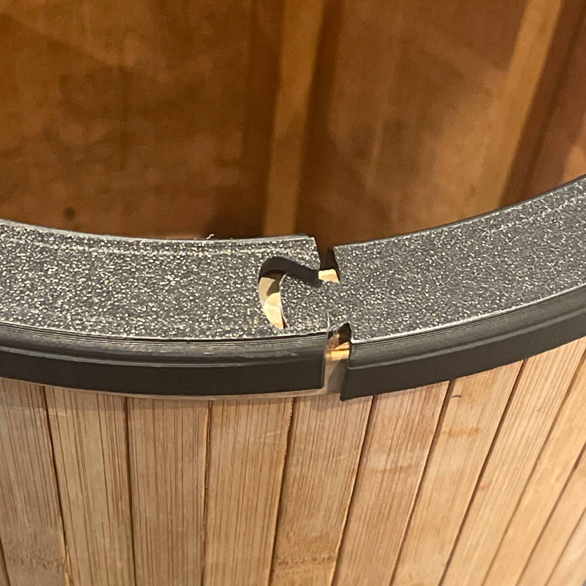 The revised pieces printed perfectly and the assembly went smoothly. Each section clicked into place with satisfying precision, and the whole rim sat securely on the basket edge.